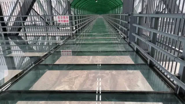 该项目共分两期打造,总体规划范围980亩,计划总投资5亿元。项目一期试运营的玻璃栈道为甘孜州首个。玻璃栈道位于雅康高速公路大渡河大桥超级工程,以大桥中心向两侧延伸,总长度 104m,宽 3.2m,面积 450㎡ 。玻璃栈道主体采用钢桁梁结构,玻璃面板为超白双层钢化玻璃。